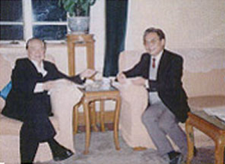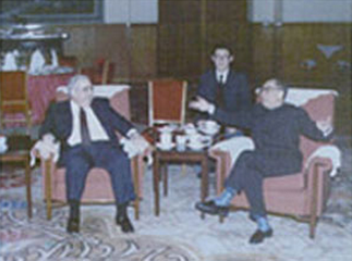 高級顧問汪道涵先生與副部長兼秘書長張培容先生一起研究工作