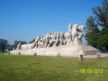 為了紀念巴西發展的歷史,突出不同國家、不同種族的人民對巴西的貢獻,市政府在最面向議會大廈、背朝中央公園的市中心位置,開辟綠地,塑造了開拓者雕像群雕。它在車水馬龍的兩條干道之間,是圣保羅著名的旅游景點之一。  經過一個多小時的車程,我們懷著興奮的心情抵達了巴西最大城市圣保羅市的外港——桑托斯。桑托斯這條美麗細長的C形海岸線,勾起了大家出海的欲望……