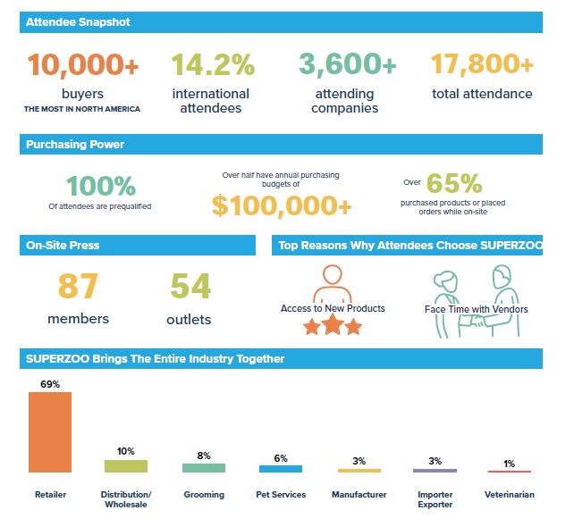 展會(huì)簡(jiǎn)介: 該展覽會(huì)由美國(guó)全球?qū)櫸锕I(yè)協(xié)會(huì)(WWPIA)主辦,每年一屆,該展覽會(huì)主要面向美國(guó)西部的寵物和水族用品零售商和批發(fā)商,規(guī)模約3萬平方米,近1100家參展商,約2萬多專業(yè)觀眾。該展覽會(huì)分為六大板塊:保健品區(qū)、時(shí)裝區(qū)、天然產(chǎn)品區(qū)、美容區(qū)、小動(dòng)物區(qū)和新展商區(qū)。美容區(qū)是該展會(huì)的特色產(chǎn)品區(qū),也是唯一一個(gè)為美容產(chǎn)品開設(shè)專區(qū)的寵物用品展覽會(huì)。