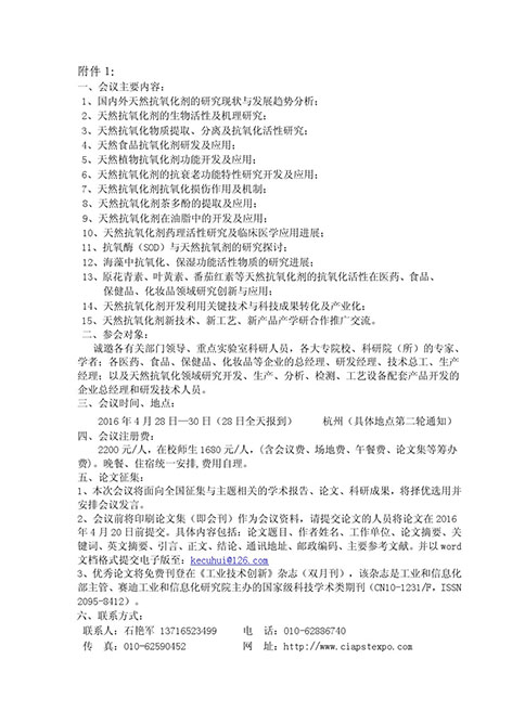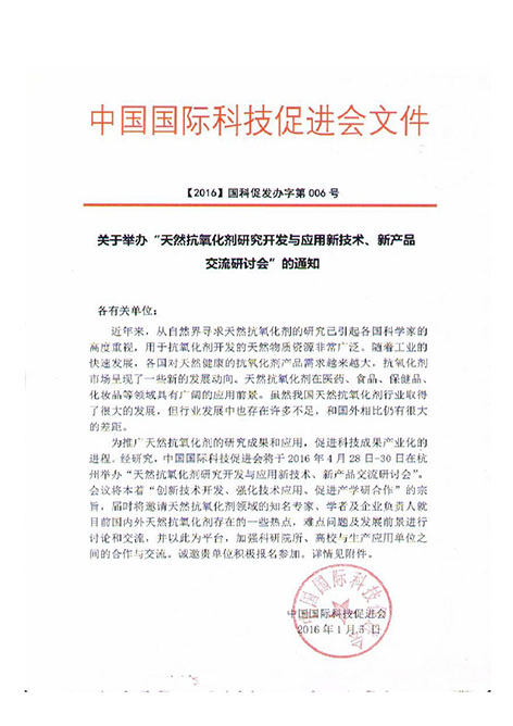 天然抗氧化劑研究開發與應用新技術、新產品交流研討會